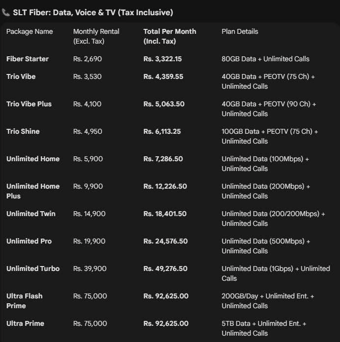 තවද පාරිභෝගිකයන්ට දැන් 100 Mbps සිට 1000 Mbps (1 Gbps) දක්වා වූ විවිධ වේගයන් යටතේ කිසිදු සීමාවකින් තොරව (No FUP/Data Caps) අන්තර්ජාලය භාවිත කිරීමේ අවස්ථාව උදා වී ඇත. මෙමගින් නිවසේ සිට රාජකාරි කරන, අධ්යාපන කටයුතුවල නිරත වන, මෙන්ම අධිවේගී Gaming සහ 4K Streaming අවශ්යතා ඇති පිරිස්වලට විශාල සහනයක් සැලසේ.