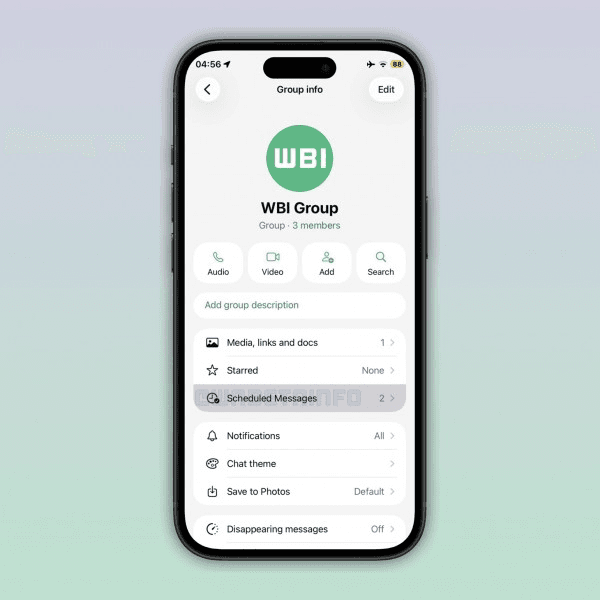 පණිවිඩයක් Schedule කළ පසු, එය Chat Info Screen හි ඇති 'Scheduled Messages' නමැති විශේෂ කොටසක දිස්වනු ඇත. එහිදී ඔබ විසින් ඉදිරියට යැවීමට නියමිත පණිවිඩ සංඛ්යාව සහ ඒවායේ විස්තර බලා ගැනීමට හැකියාව ලැබේ.
